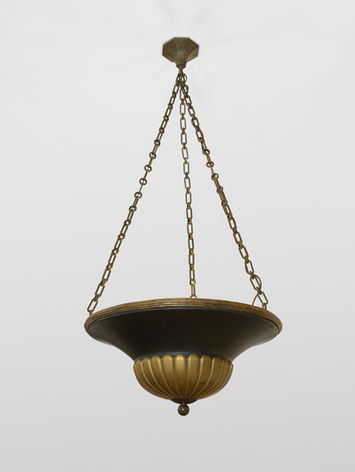 A rare pair of sconces with their original dark green lampshades by the renowned French designer Madeleine Castaing.